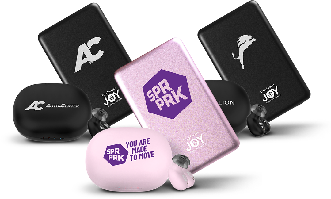 Haluatko firmallesi, seurallesi tai muulle jengillesi JOY-tuotteita omilla logoilla? Nyt se on mahdollista. Maailman pienimmät kuulokkeet tai tyylikkäät vara-akut logollanne herättävät varmasti huomiota neuvottelupöydässä, treeneissä tai vähintäänkin kateutta naapurissa!