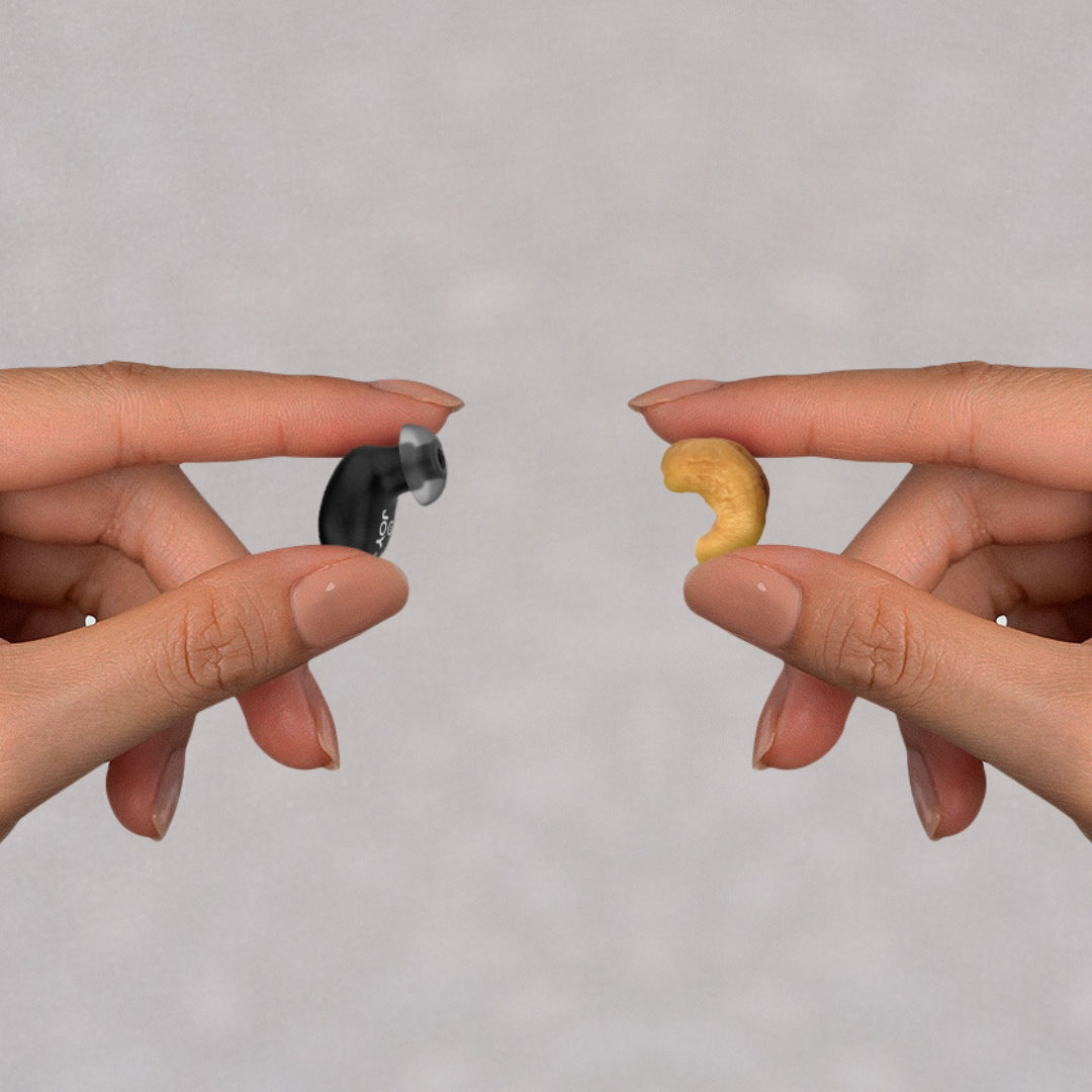 TinyS® on muotoiltu mukautumaan korvan muotoon. Mukana tulee seitsemät erikokoiset vaihtopäät, jotta istuvuus on juuri Sinulle osuva ja ne pysyy varmasti.