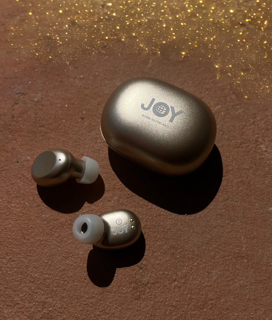 "Mä vaan tykkään näistä Joy TinyS kuulokkeista, kun nää pysyy, ei putoa, eikä satu ja näiden takana on suomalainen yritys"