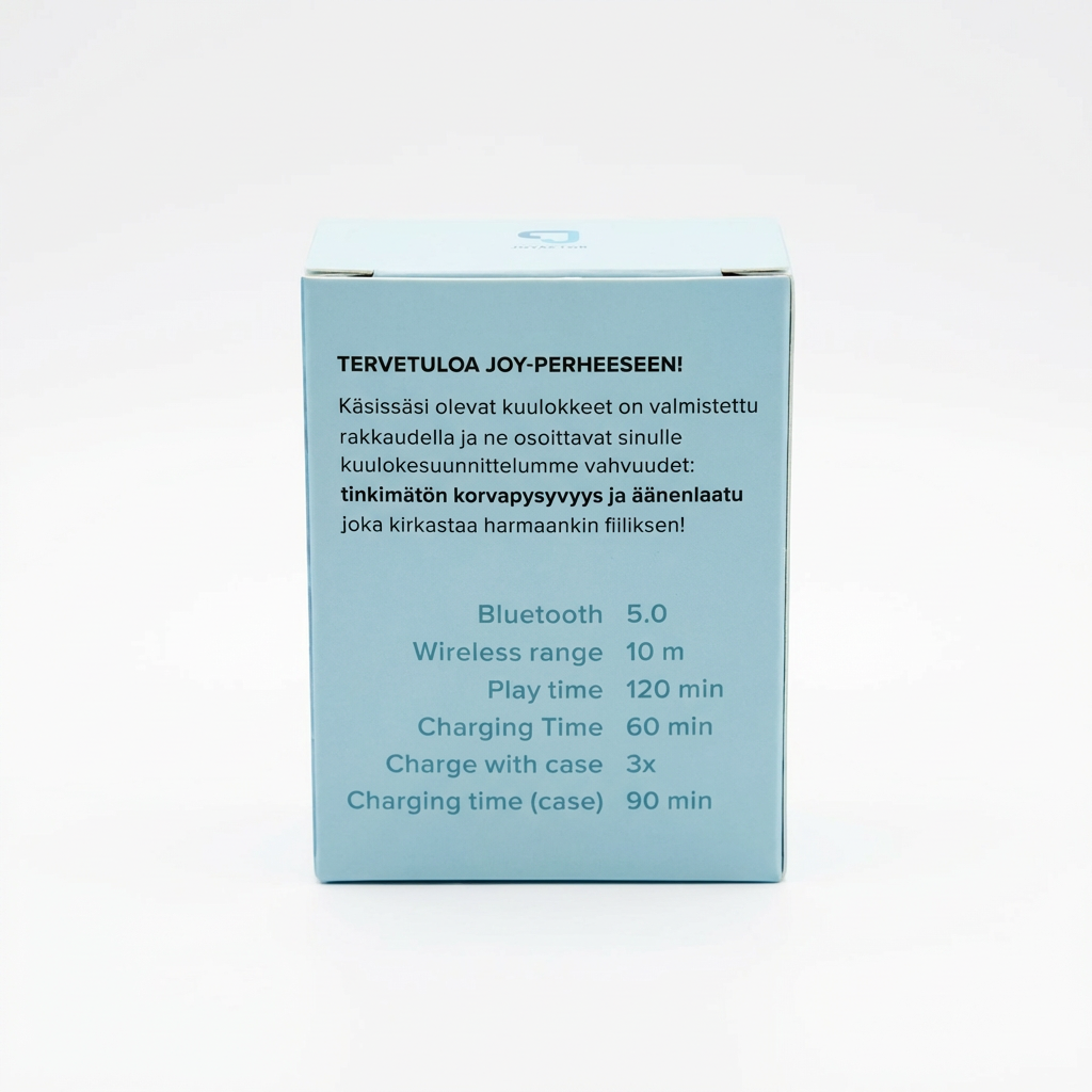 Joybuds on yksinkertainen langaton kuuloke arkeen ja varakäyttöön. Se yhdistyy nopeasti Bluetooth 5.0 -yhteydellä ja toimii luotettavasti jopa 10 metrin etäisyydeltä.